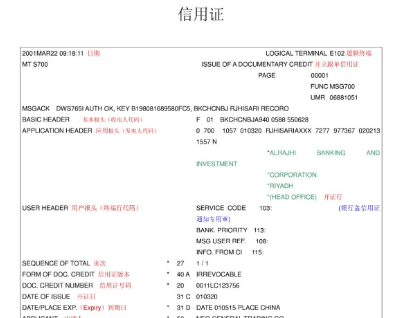 一、信用证版本内容
